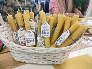 To wspaniała karuzela dobra. My sfinansowaliśmy materiały (poszło 10 kg węzy pszczelarskiej i 50 m knota), a nasza Społeczność dała uśmiech i ręce pełne energii do pracy. Warsztaty prowadziła fundacyjna Ciocia Marta Libiszowska.